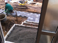 Jetzt sind alle alle Wege, Terrasse und Aufgänge in Waage gebracht und komplett gerüttelt. Hoffentlich übersteht das Haus den ersten großen Sturm...